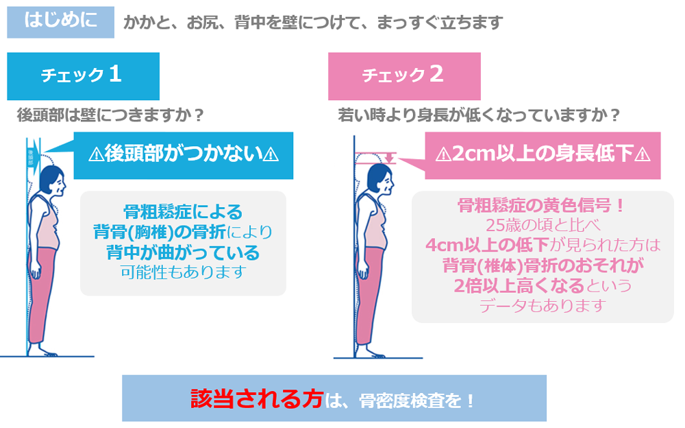 身長や姿勢の変化から調べる「骨粗鬆症ワン・ツーチェック」