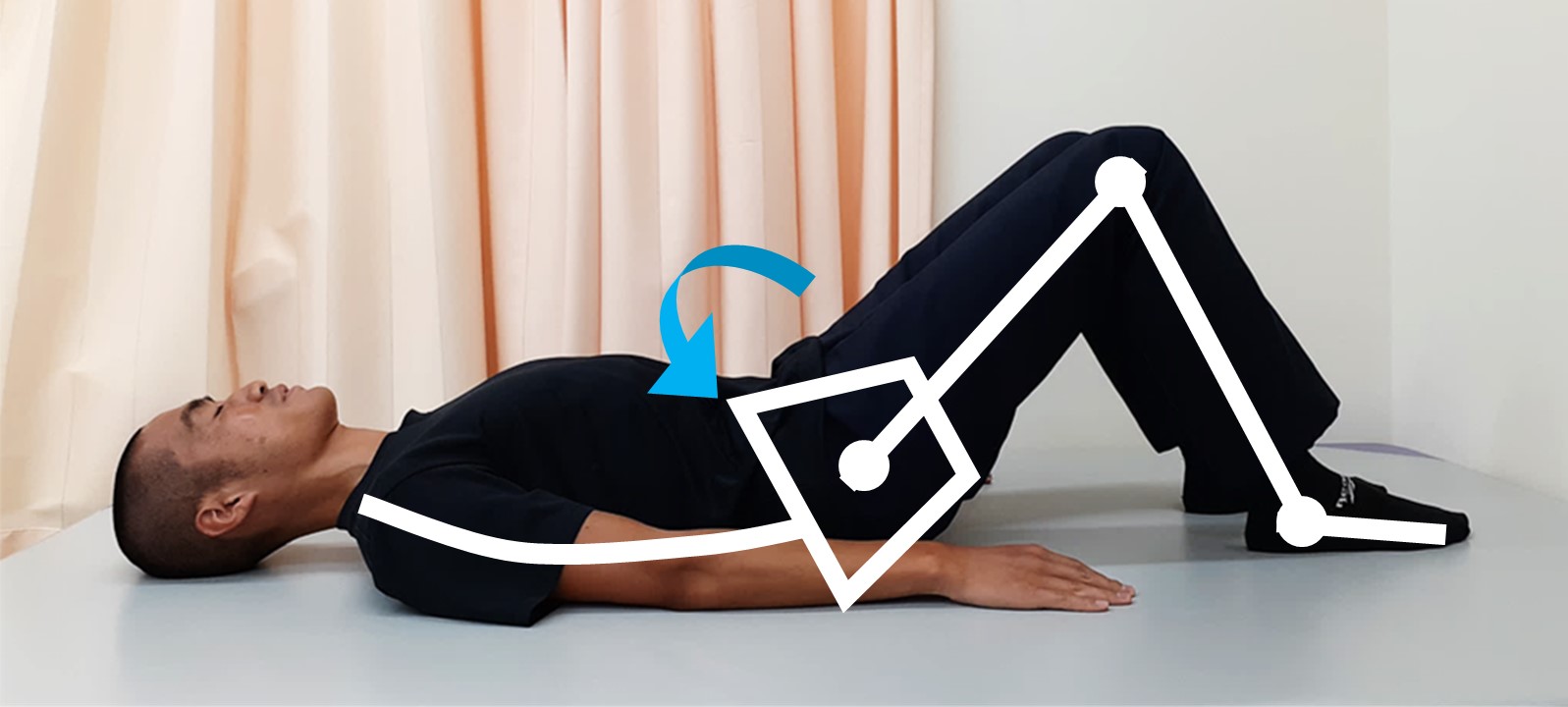 POSE3:息を吐いて骨盤を頭の方向へ傾ける(骨盤後傾)